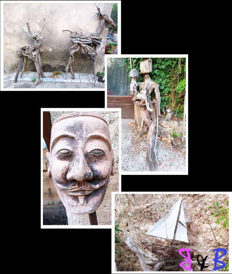 Sculptures animales réalisées en bois inachevé par l'artiste Emmanuel Cometto de Mourèze.
