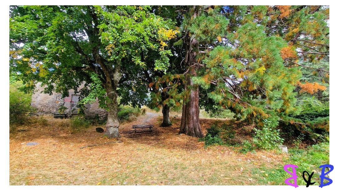 Nous arrivons aux Hautes Bâties de Cousson, une ruine avec de grand arbres majestueux.