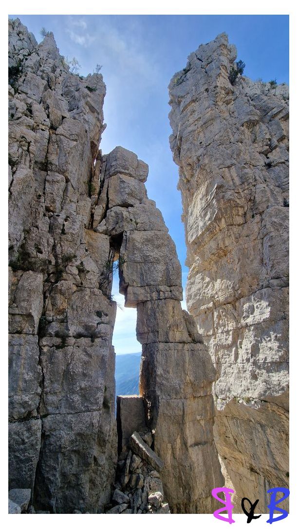 Cette formation dolomitique intrigue le regard, elle est formée de cheminée perchée sur une crête avec vue imprenable.