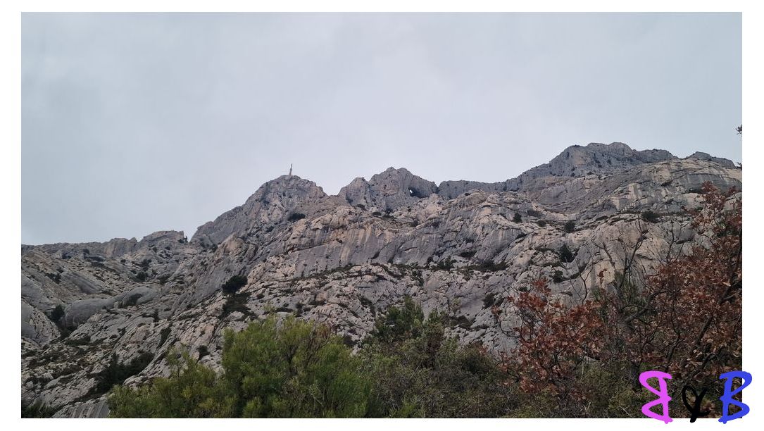 Au-dessus de nos tête, la Croix de Provence et le trou du Garragaï.