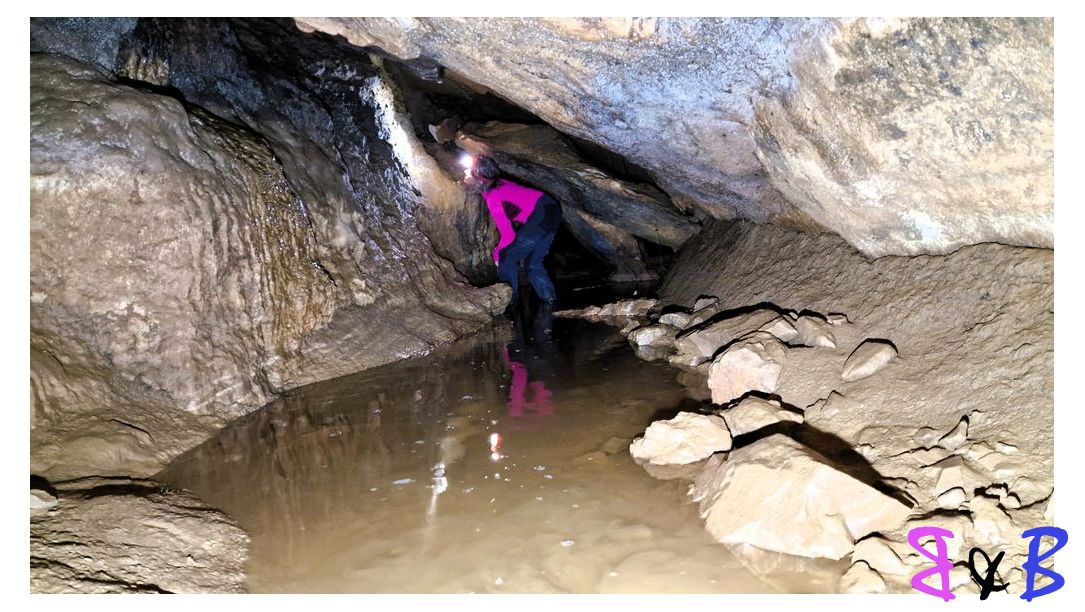 La grotte est juste au-dessus, une petite visite nous permet de constater que là aussi l'eau est présente au fond de la cavité et nous empêche d'aller plus loin.