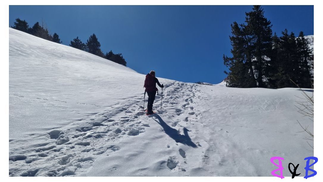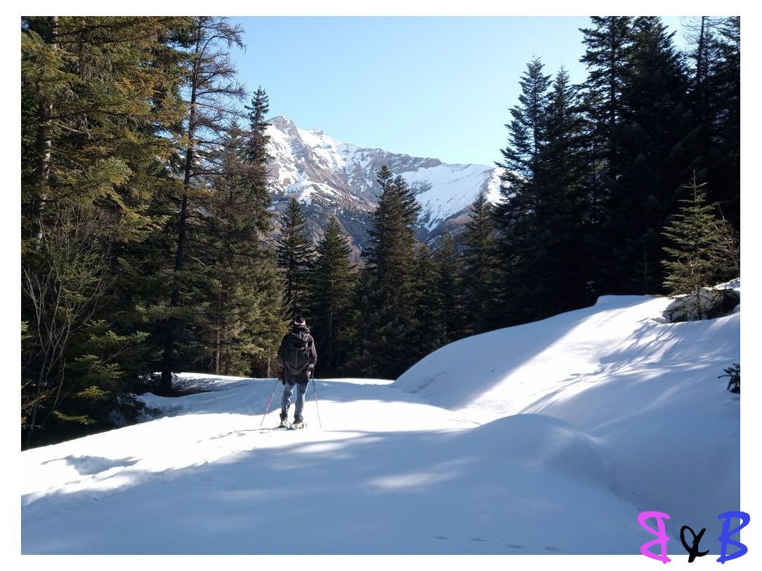 Aujourd'hui, temps magnifique, c'est parti pour une randonnée raquettes au Lac d'Allos.