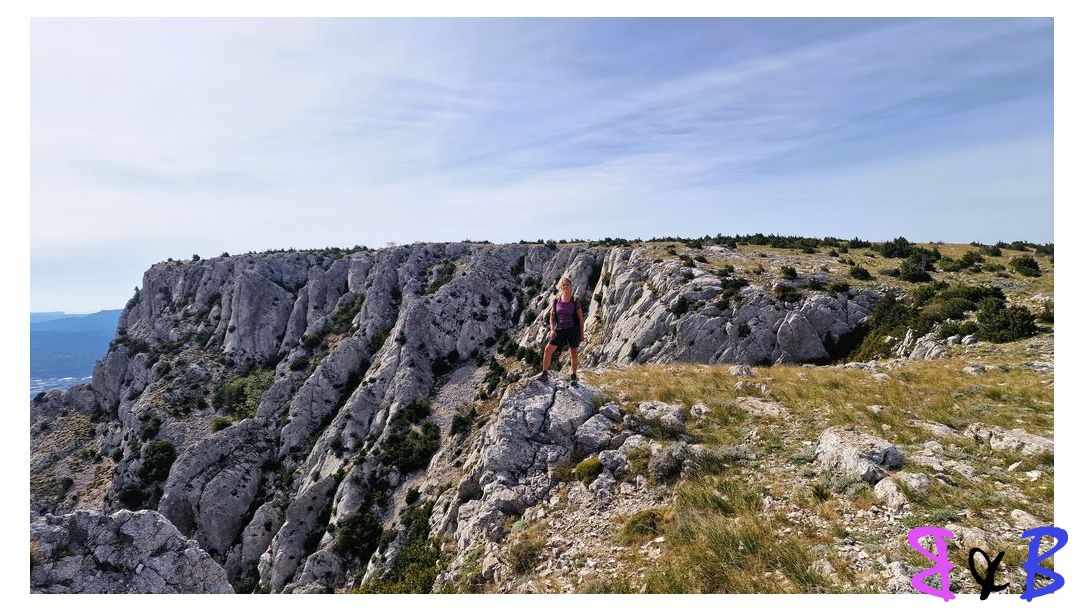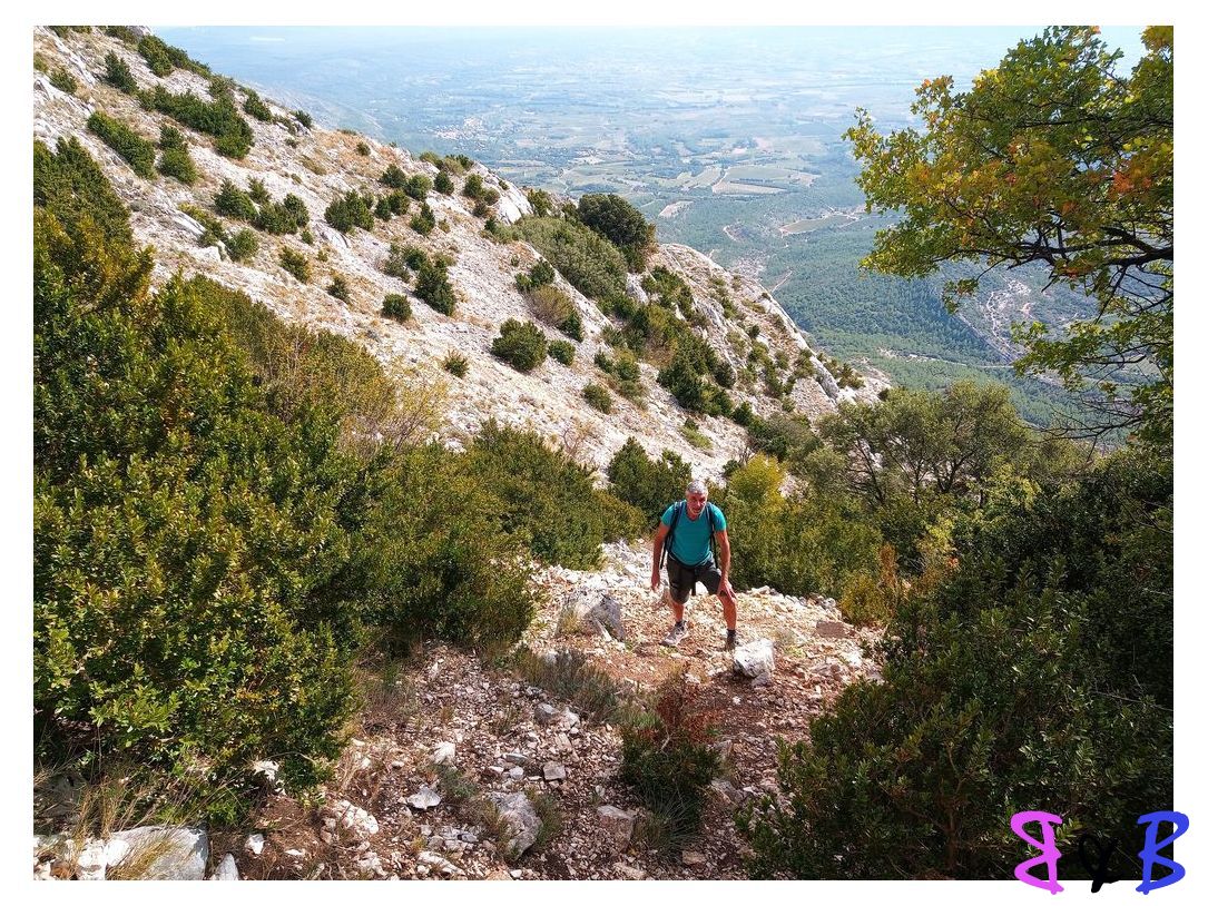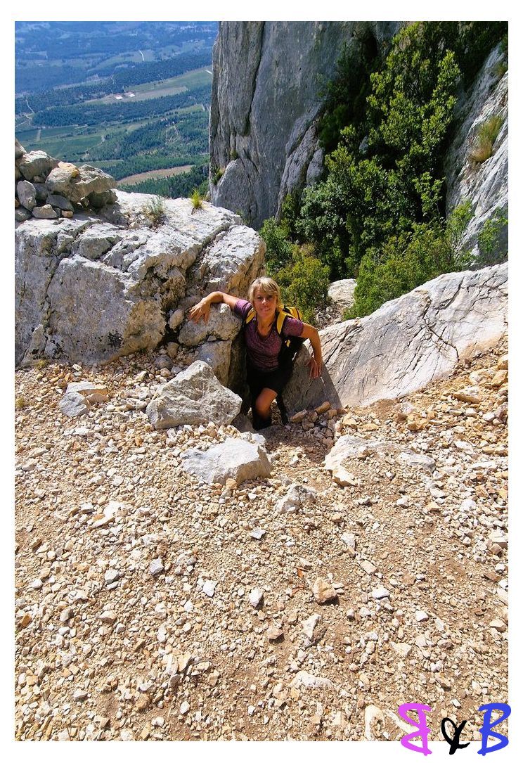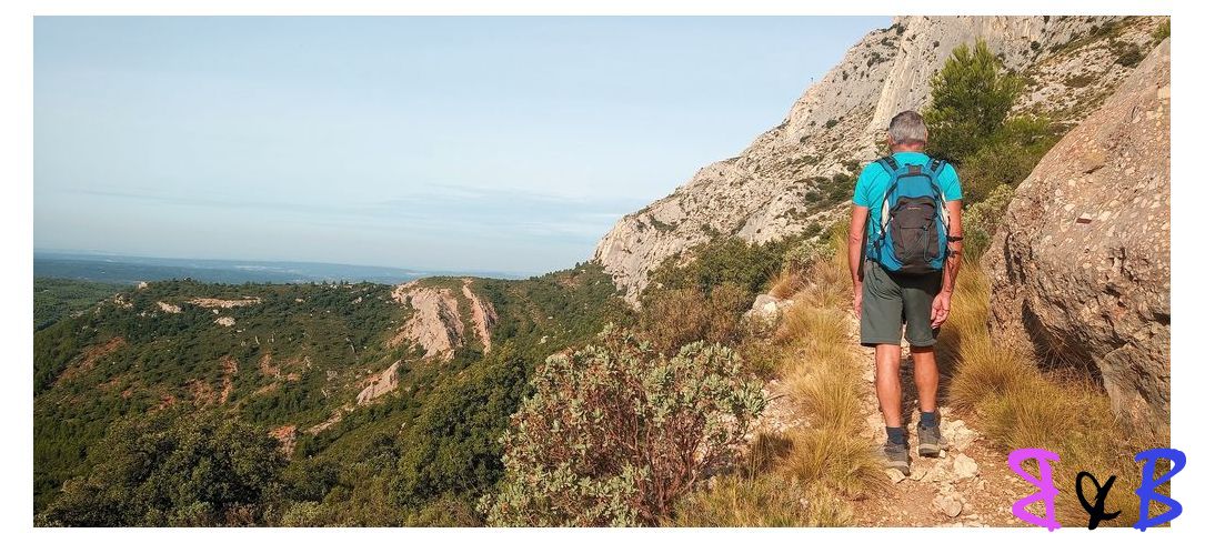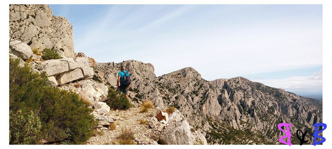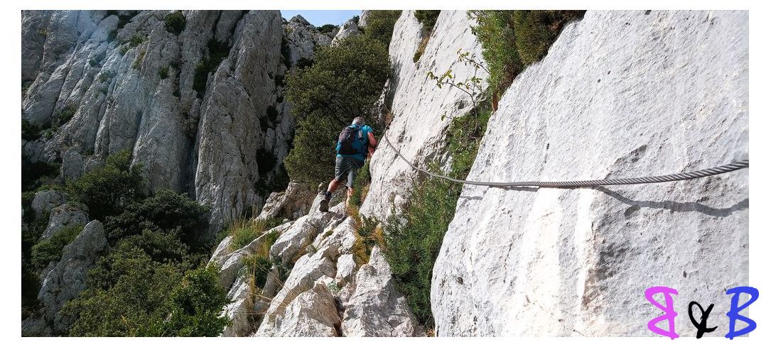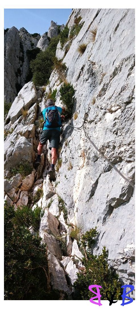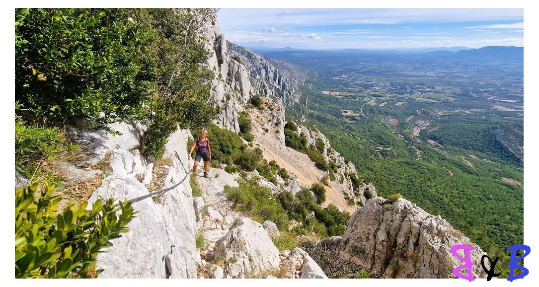 Une ascension de la Ste-Victoire par la marbrière, refuge Baudino, le Grand Couloir équipé de câbles et chaînes, la crête et descente par le sentier noir au Col de Vauvenargues.