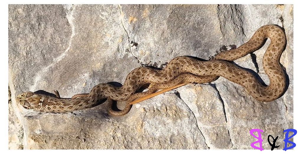 A la sortie de la grotte, se dorant au soleil, une petite couleuvre se prélasse, non gênée par notre présence.