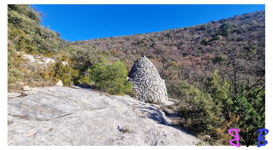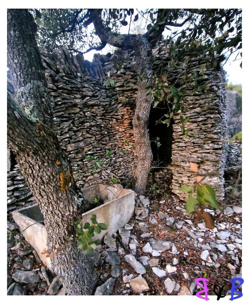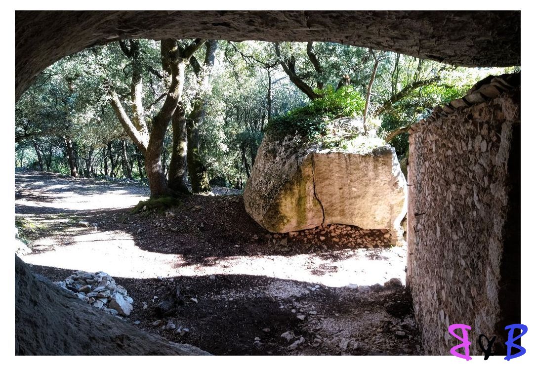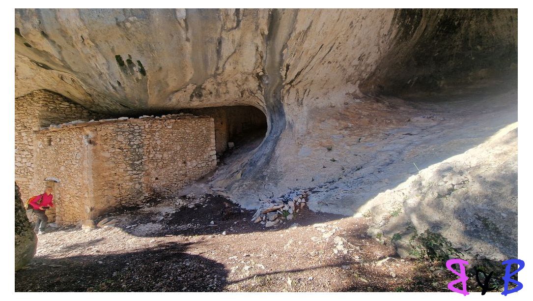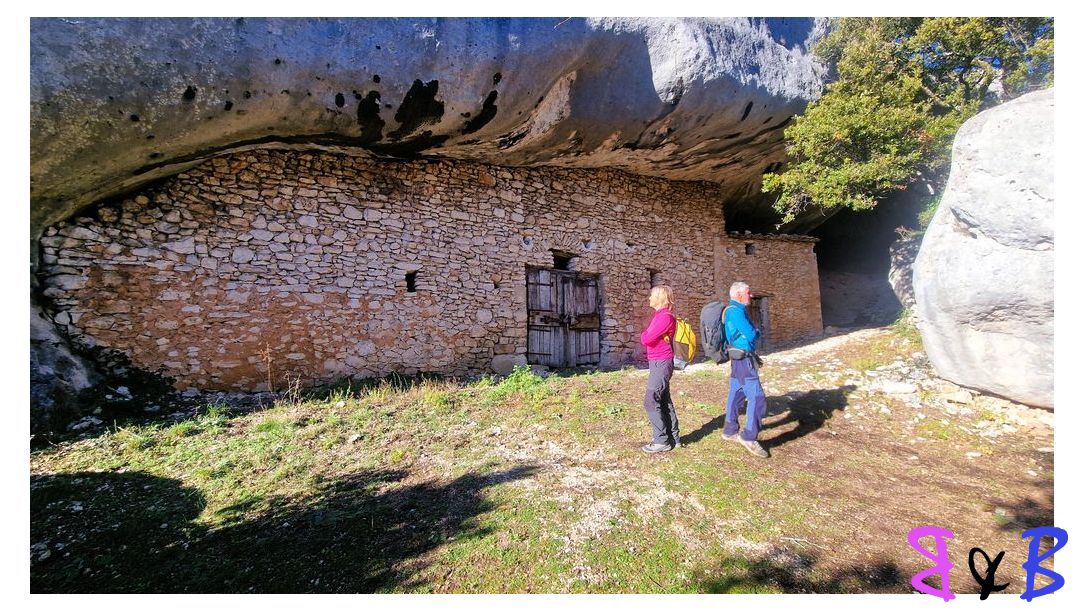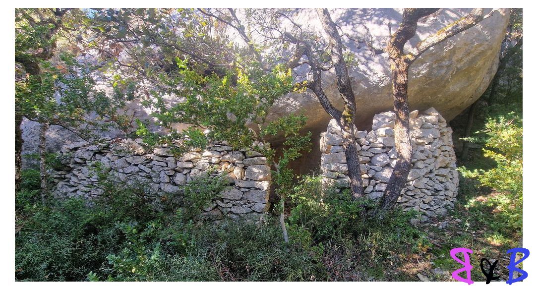 Plusieurs baumes abritent un véritable ensemble troglodytique construit en pierres sèches contre le rocher.