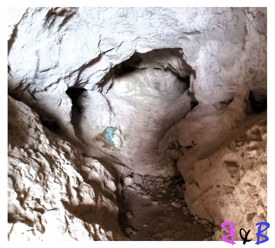 Galerie spacieuse longue de 14 m donnant sur un puits profond de 6m et obstrué.