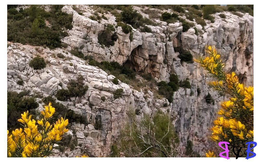 Dans la falaise de Petit Bassan, nous apercevons une grotte ou une baume.