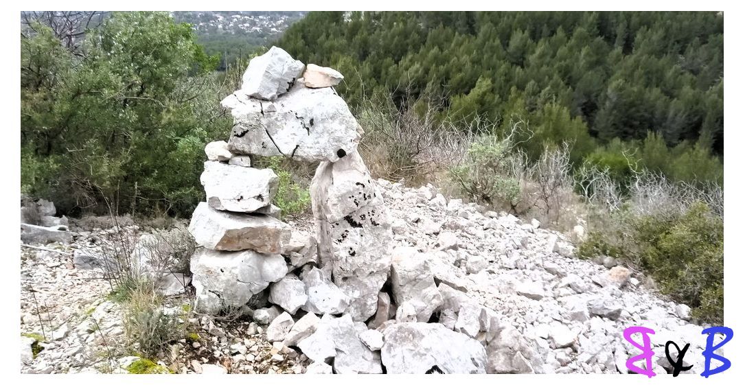 Le Baou Rouge et situé sur les hauteurs de la ville d'Auriol, il témoigne des premières occupations humaines en vallées de l'Huveaune, face à lui, le Petit Bassan qui culmine à 530m.