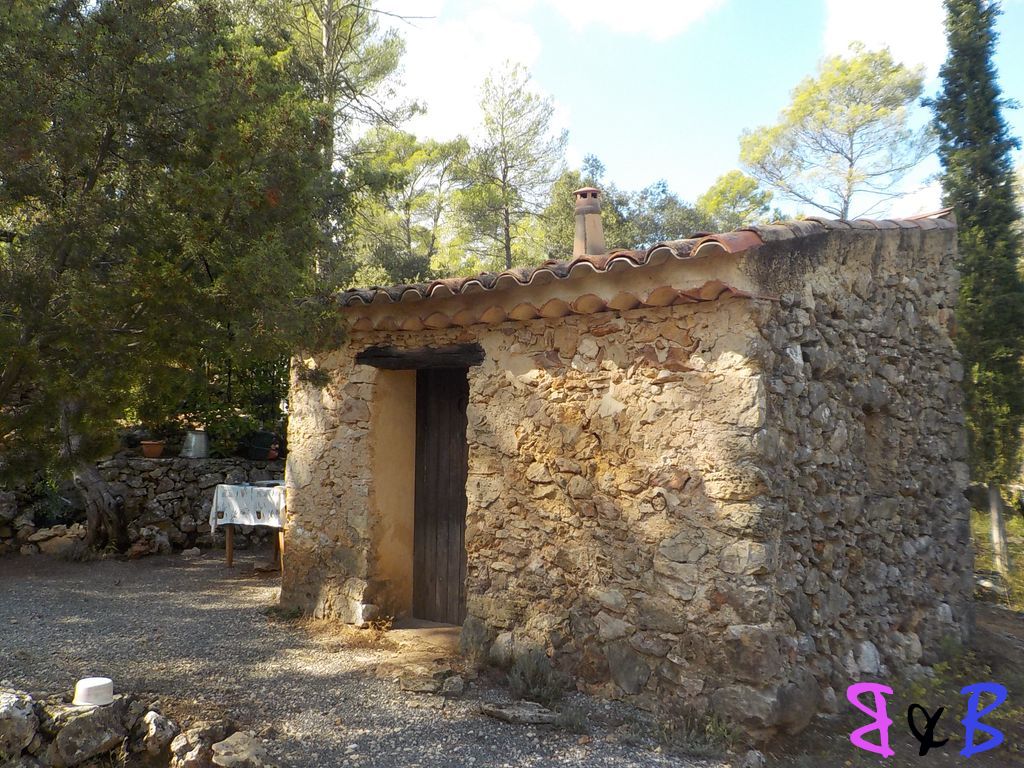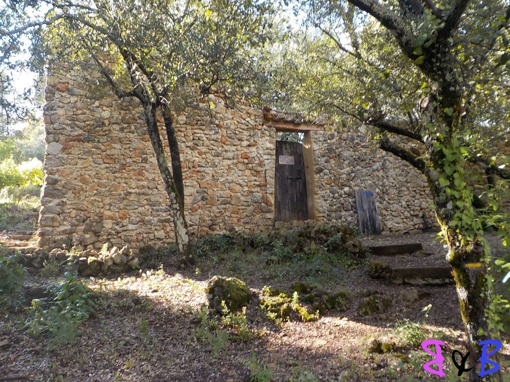 Le terrain est construit de plusieurs restanques, en partie haute, une petite maison en pierres, très mignonne.