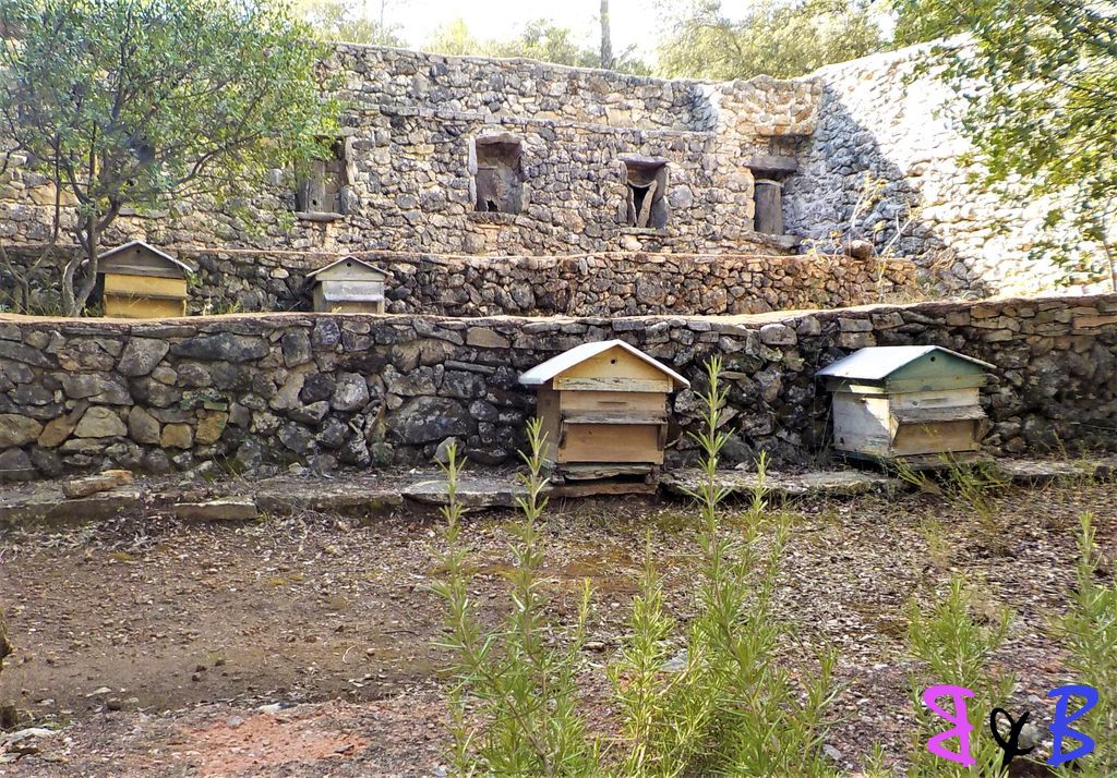 Les ruches primitives étaient constituées de plaques d'écorce de chêne-liège. Les niches sont placées à une certaine hauteur pour les protéger de l'eau et des animaux amateurs de miel.