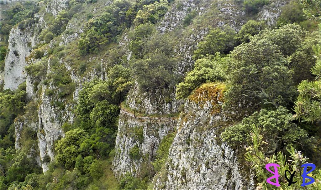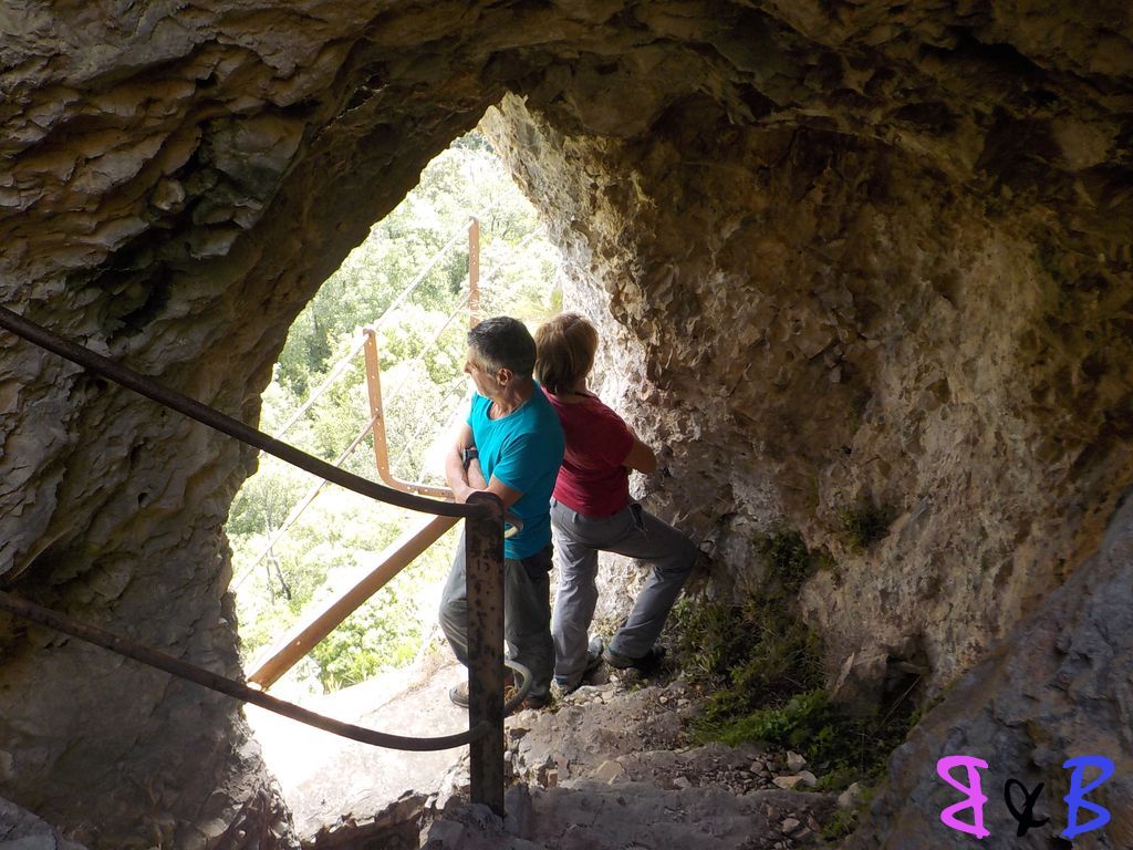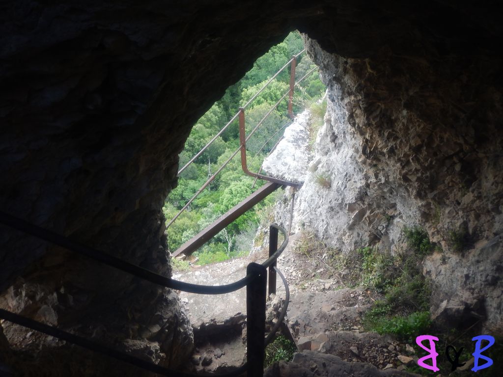 Le passage creusé dans le rocher permet d'accéder à une passerelle accrochée à la falaise.
