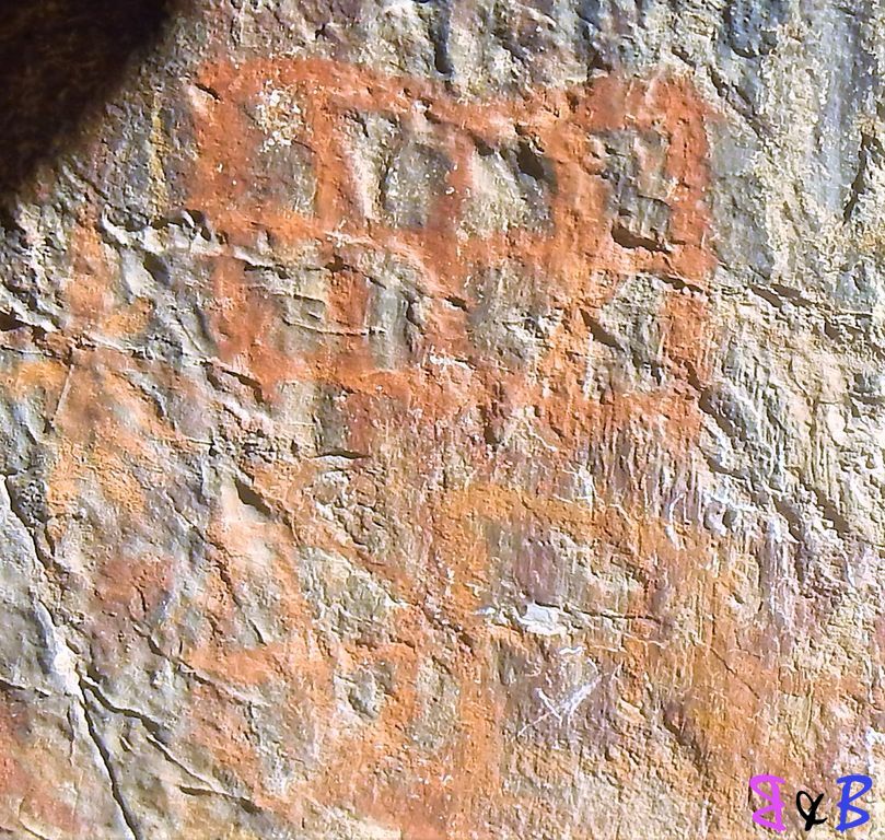 Cette grotte abrite des peintures rupestres datant du néolithique. Son flanc sud présente un mur calcaire relativement plat dans lequel on dénombre une centaine de dessins et de figures géométriques couleur ocre. Les figures sont souvent superposées ce qui provoque parfois un aspect confus, mais certains dessins sont parfaitement isolés et bien reconnaissables.