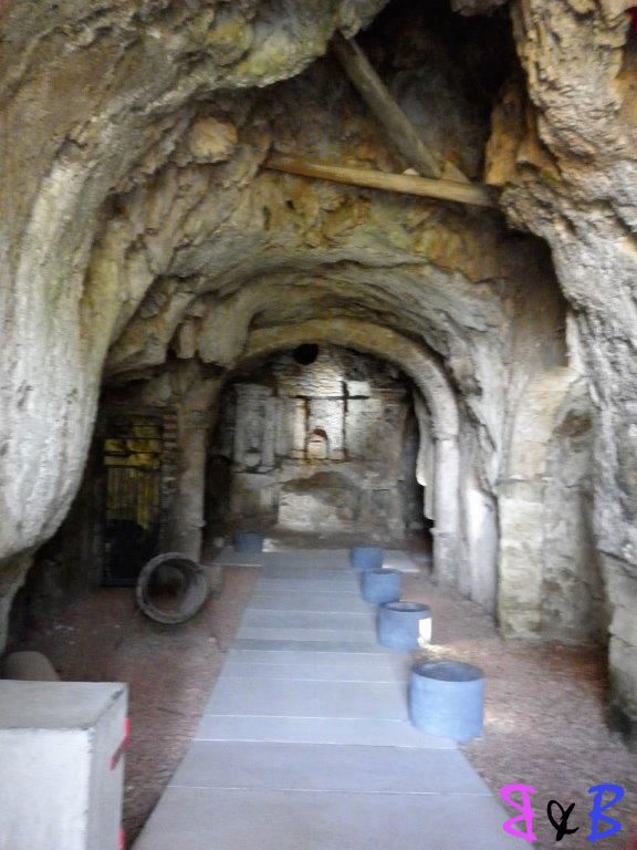 L'ancien couvent troglodytique construit par les frères "Carmes déchaussés" dans des grottes naturelles vers 1670. Ils l'occupèrent durant près d'un siècle avant l'industrialisation du site.