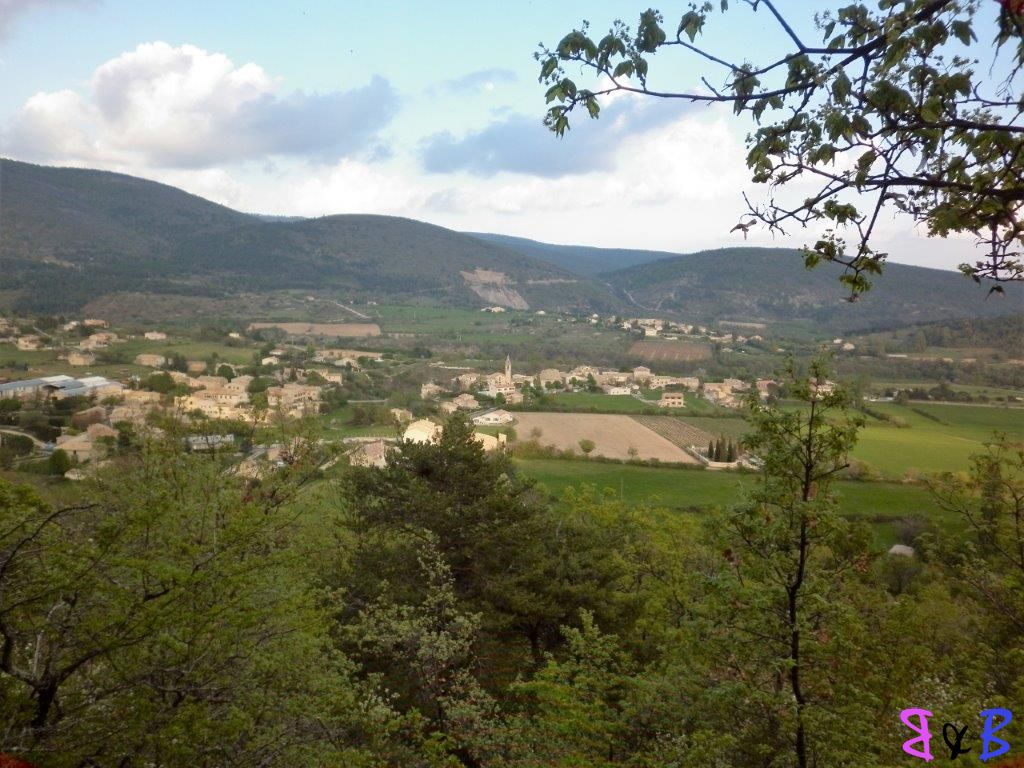 On aperçoit le village de Saumane, notre deuxième journée s'achève, après une marche de 25 km et plus de 1000 m de dénivelé.