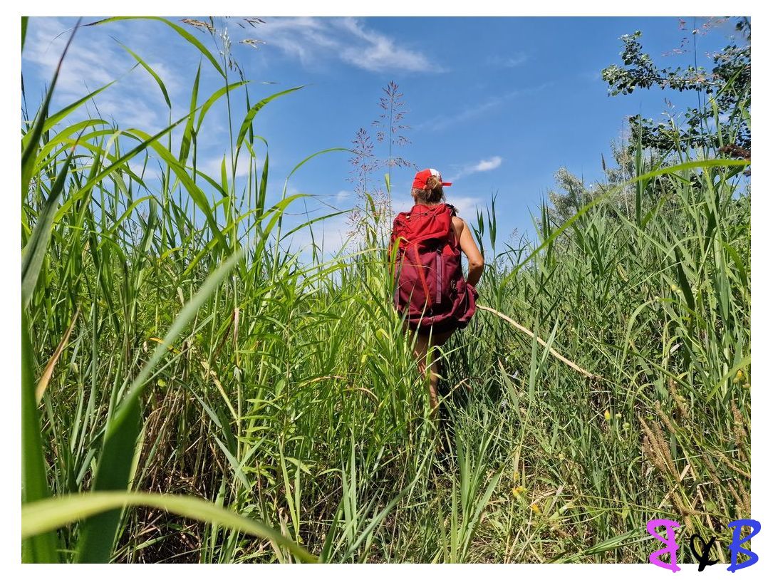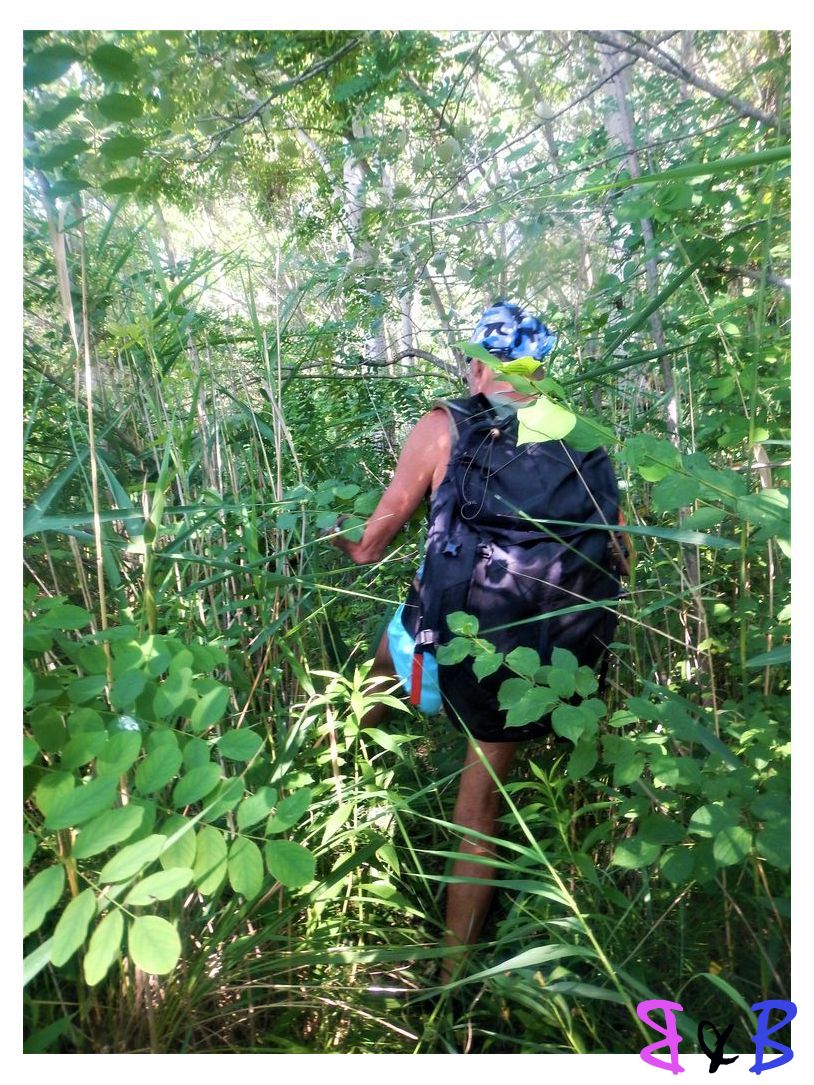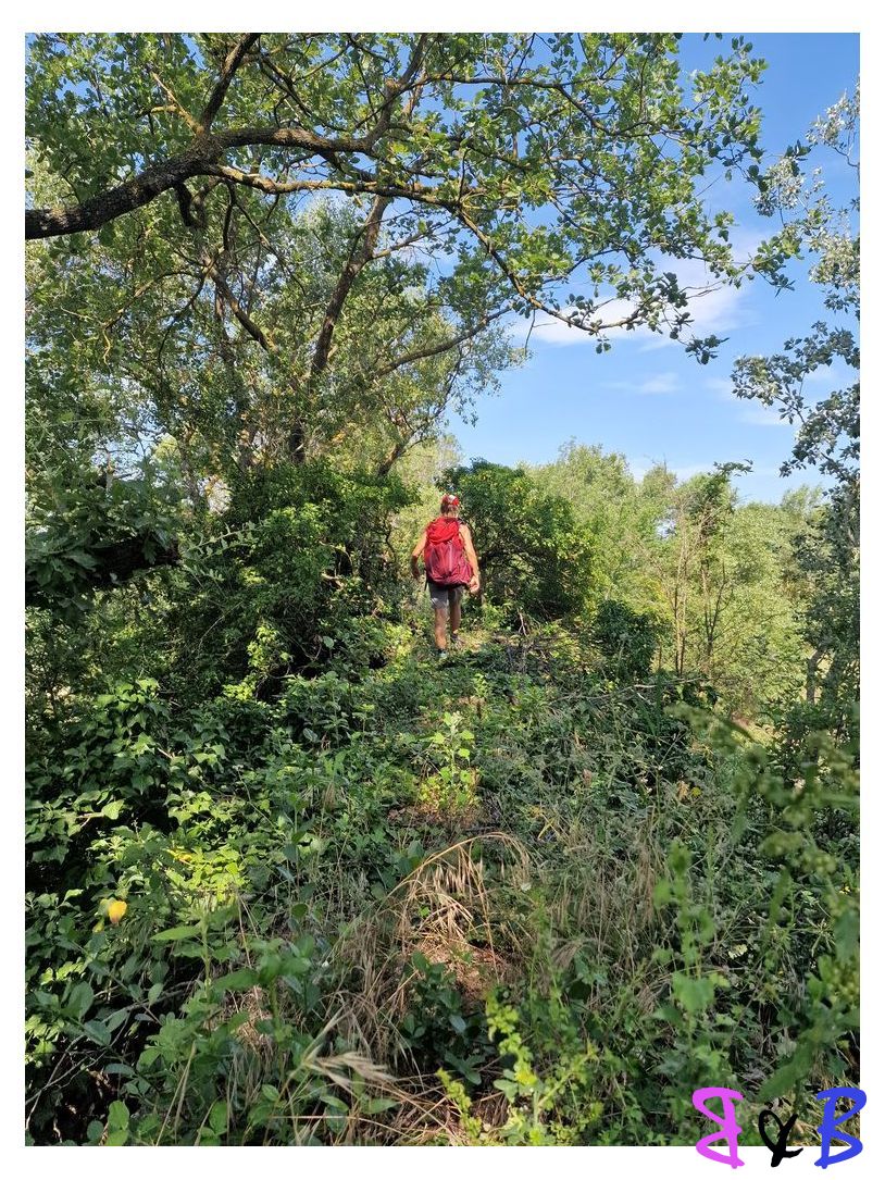 Les bords, très envahis par la végétation, la digue permet de faire notre approche en cheminant dessus.